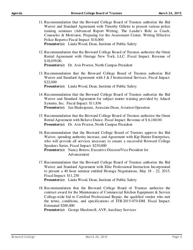 2015 03 24 Broward College Board Of Trustees Public Agenda 1113